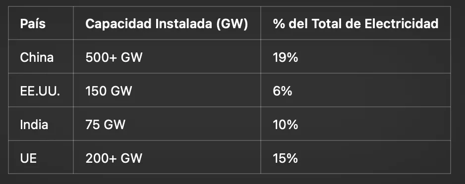 – La capacidad solar global superó los 1,200 GW en 2023, siendo la fuente de energía renovable de mayor crecimiento.